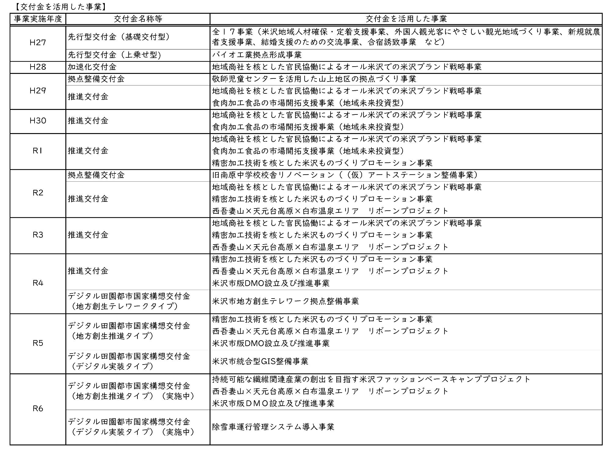 これまで本市が活用した地方創生関連交付金は、以下のとおりです。