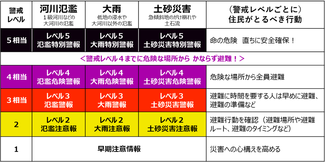 「警戒レベル」で確認!状況に合わせた避難行動を!