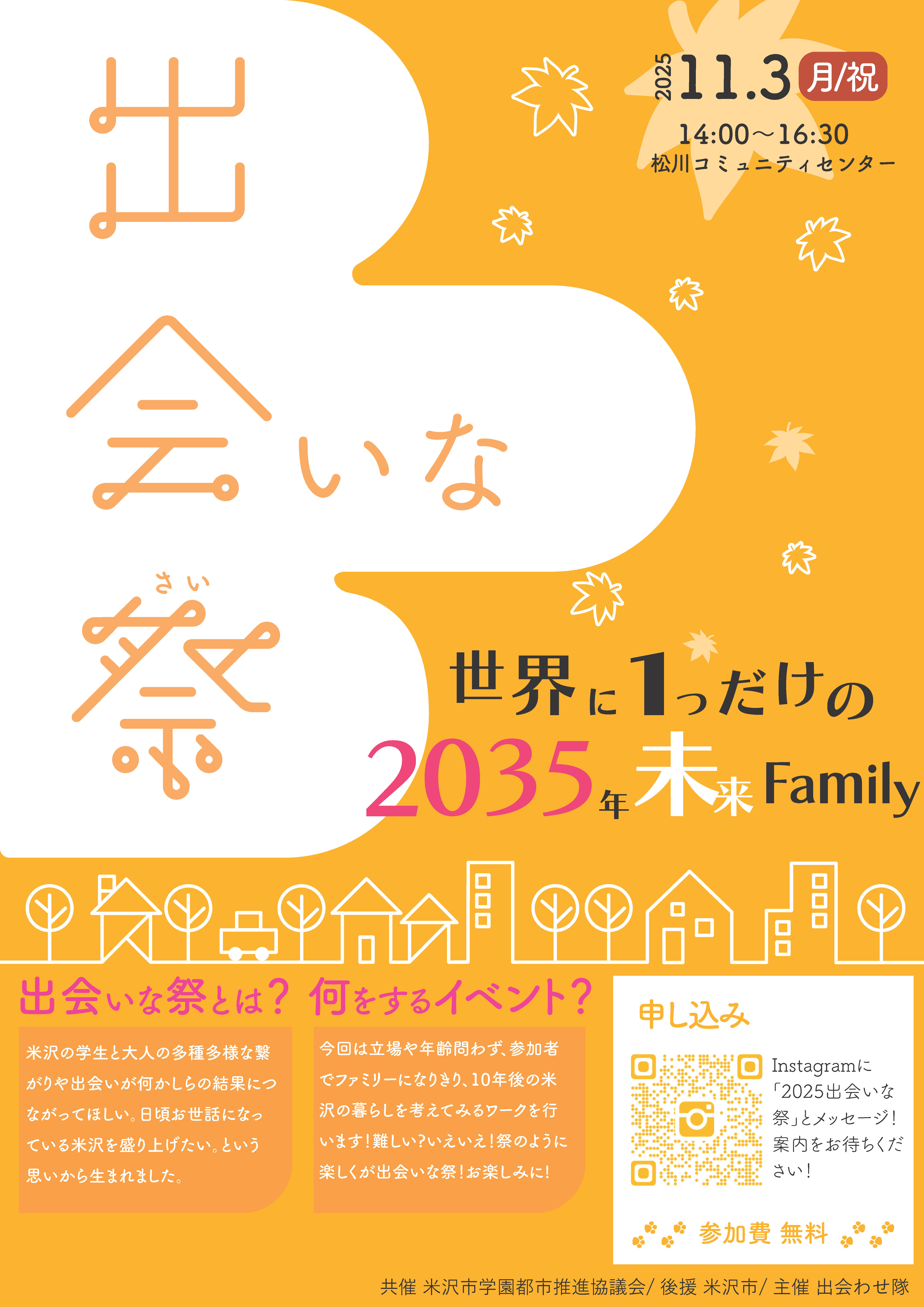 Instagram( @deaiyonezawa )のメッセージで「2025出会いな祭」とお送りください。