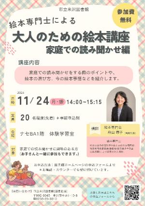 家庭での読み聞かせに興味のある方。 (お子さんと一緒に参加もできます。) |