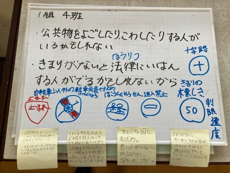 市民憲章の各条文について、どんな意味がこめられているのか・自分たちにはなにができるのかを考えてもらいました!