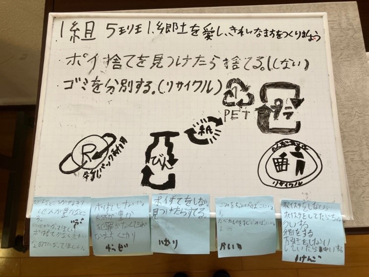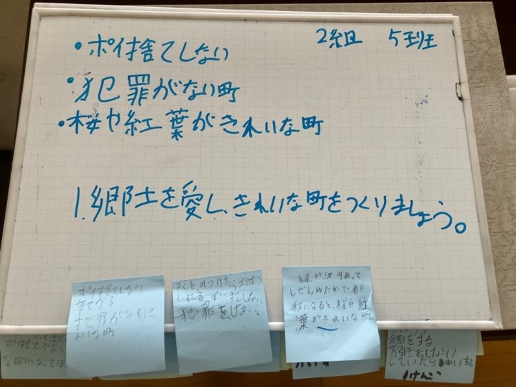 勉強会後、「いつもやっているあいさつやゴミ拾いなどが実は市民憲章だったことが分かってよかった。」、「自分のまちのいいところを知れてよかった。」というような感想をいただきました。児童のみなさんに『市民憲章』を少しでも知ってもらえてよかったと思います。