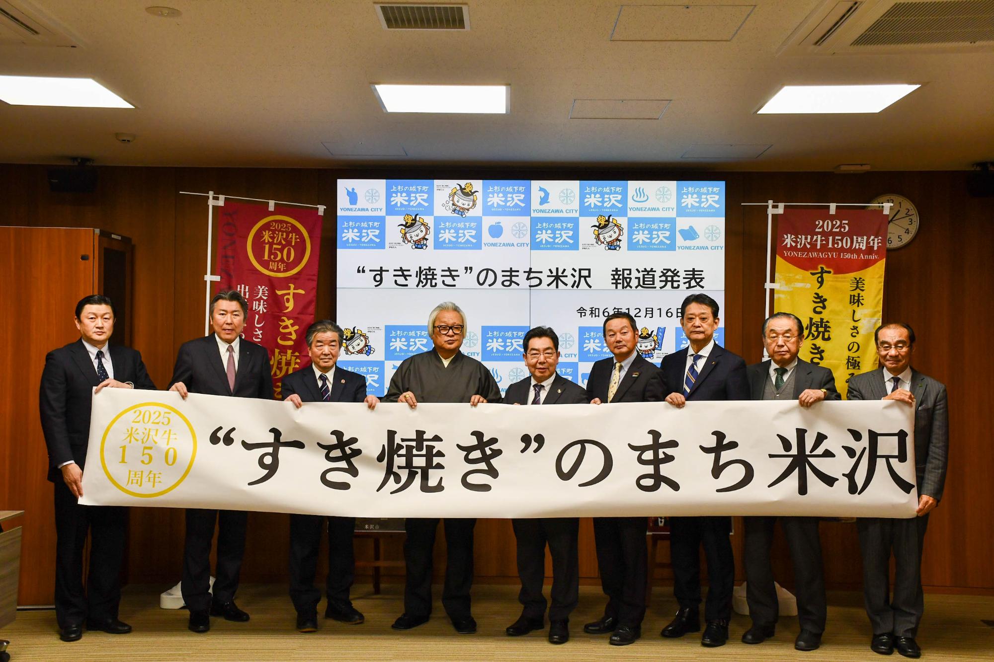 特に、米沢牛の需要が高まる年末年始に“すき焼き”のまち米沢を周知することで、米沢牛の美味しさとその歴史を地域の誇りとして再認識してもらうとともに、家族や友人知人とともに米沢牛のすき焼きを味わうことを広め、米沢牛のブランド価値を市民全体で共有することで、米沢牛の食文化を次世代へ継承してまいります。